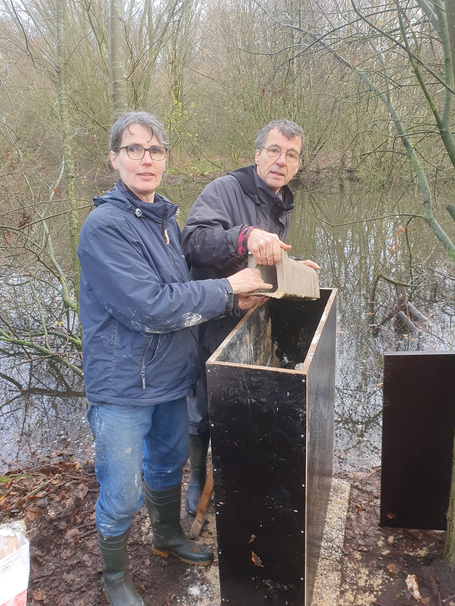 Mitglieder des Heimatverein Bersenbrück e.V. erstellt als Ersatz für die beschädigte Eisvogelröhre , am Feldmühlenteich eine neue Brutröhre