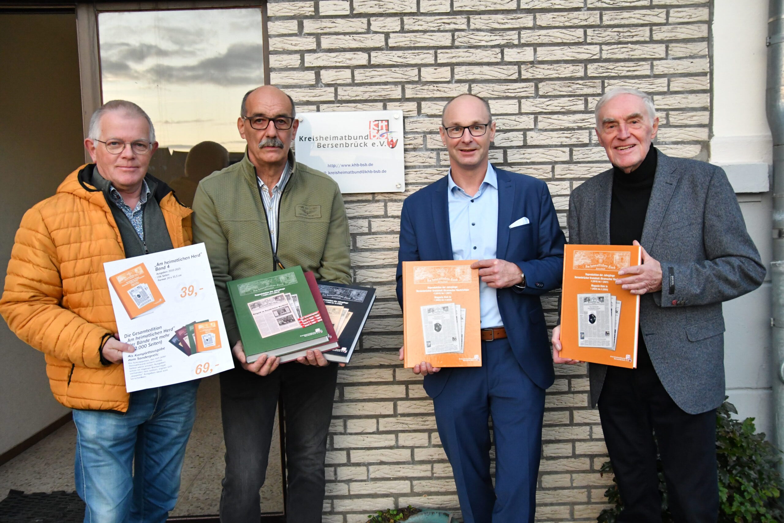 Die beigefügte Aufnahme entstand anlässlich der Vorstellung von Band 4 „ Am heimatlichen Herd“ und zeigt von links nach rechts: Georg Geers, Medienpark Ankum, Hermann-Josef Bollmann, Kreisheimatbund Bersenbrück e.V., Lars Pfeilsticker, Vorsitzender der Gemeinnützigen Stiftung Kreissparkasse Bersenbrück, und Franz Buitmann,