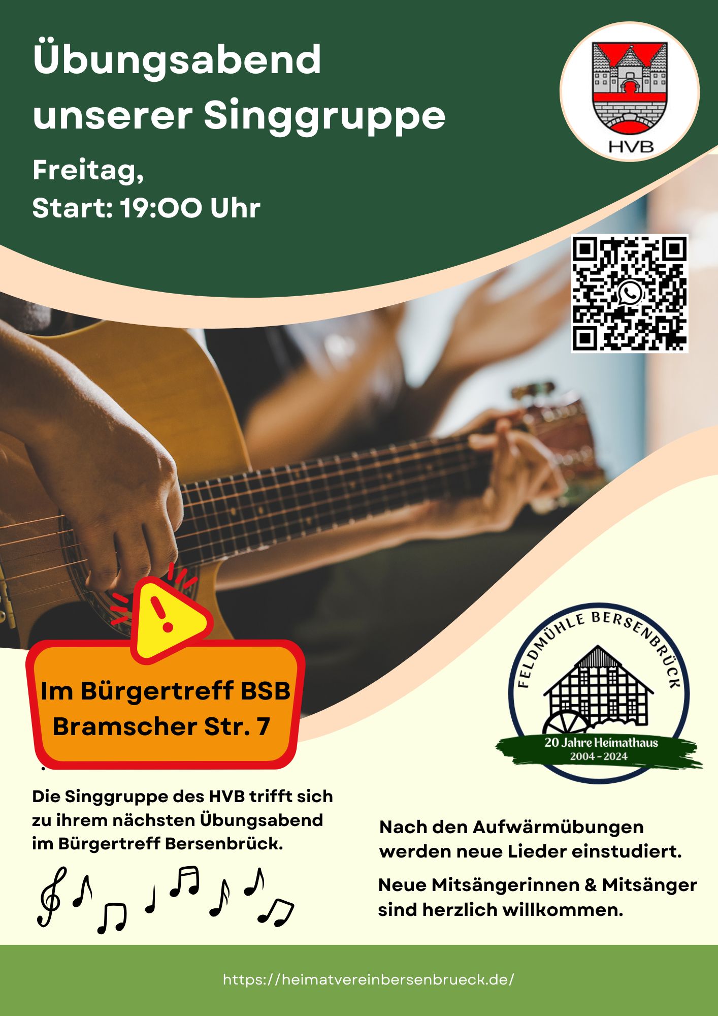 Übungsabend unserer Singgruppe 07.11.2025 19.00 Uhr im Bürgertreff – BSB – Bramscher Str. 7