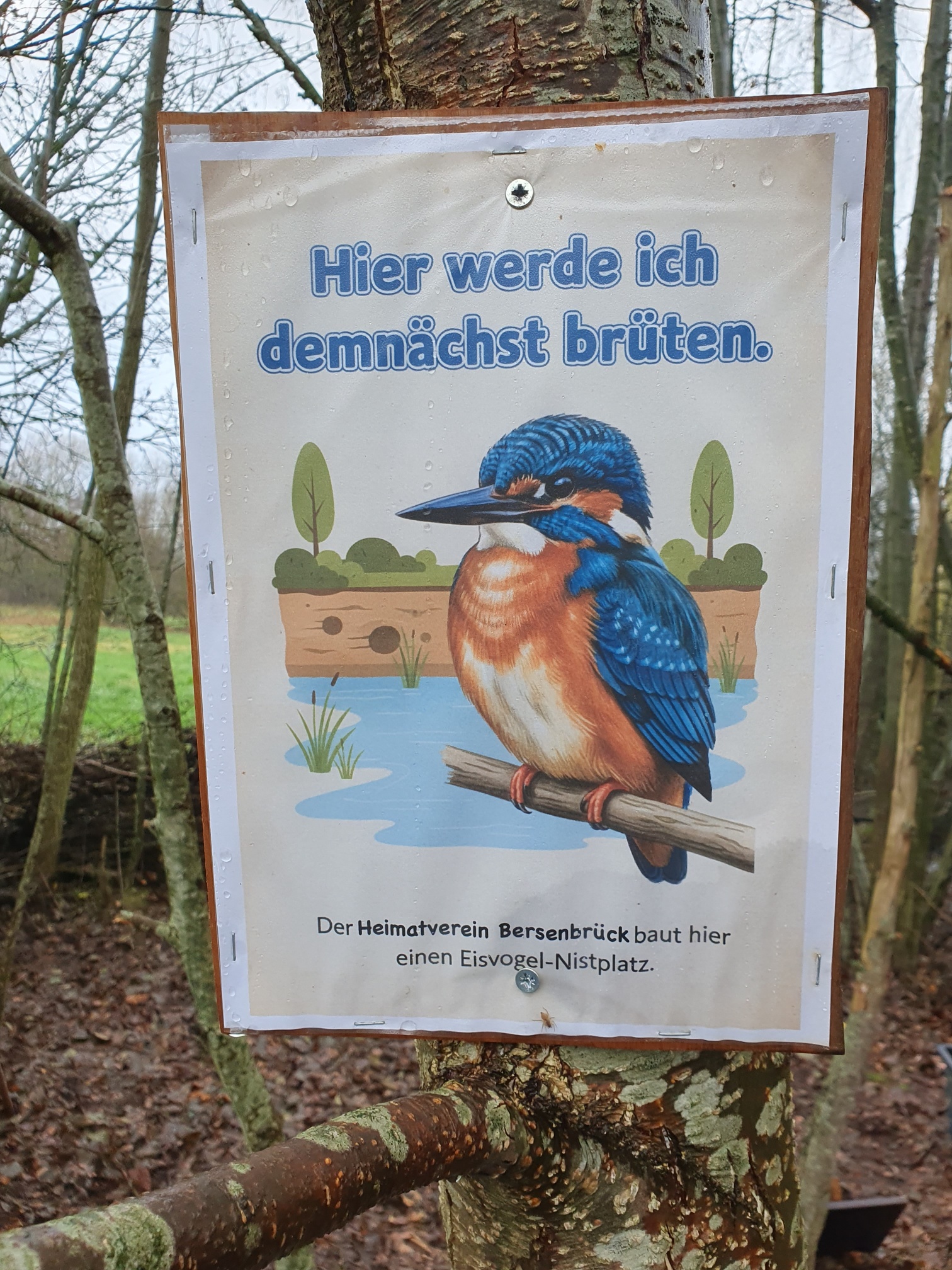 Mitglieder des Heimatverein Bersenbrück e.V. erstellt als Ersatz für die beschädigte Eisvogelröhre , am Feldmühlenteich eine neue Brutröhre