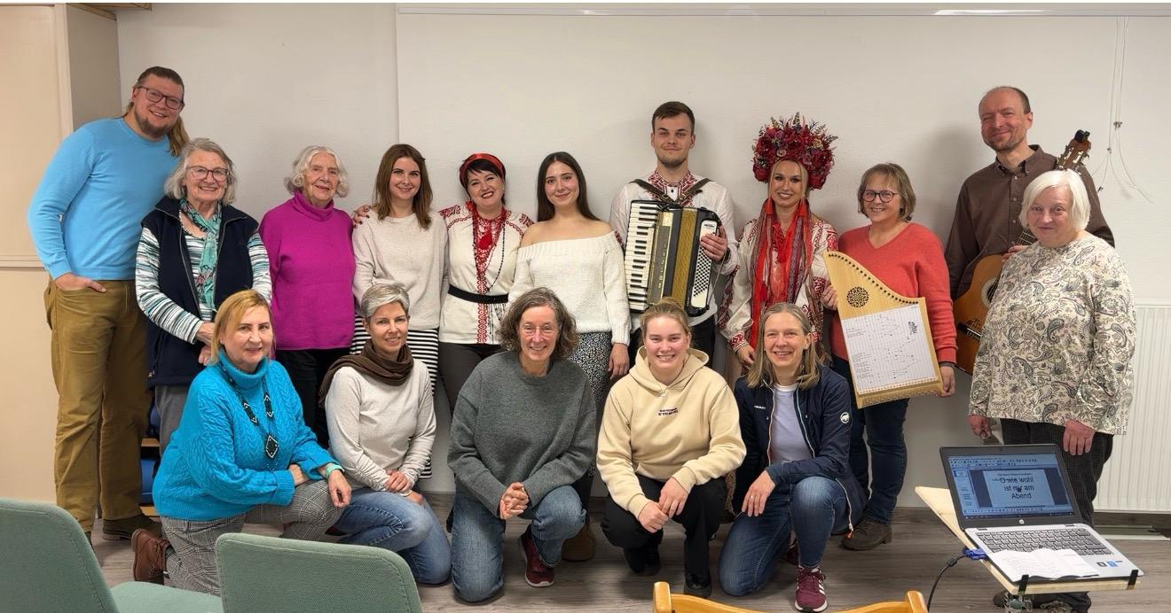 Ein Dank geht an die Beteiligten: Den Bürgertreff Chor unter der Leitung von Valeriia Karamysheva, Maria Hartmann an der Tischharfe, Konstiantyn Puzhko am Akkordeon, Tom Heuberger an der Gitarre und nicht zuletzt an die Verantwortlichen des Bürgertreffs und Heimatvereins, die diesen Tag der Hausmusik 2025 ermöglicht haben.
