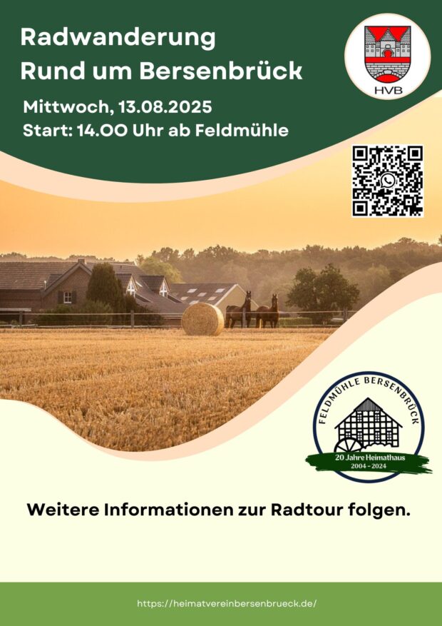 aktuelle Meldungen zu den Veranstaltungen gibt’s auch in der WhatsApp-Gruppe Info Point BSB, in der Tageszeitung, im Aushangkasten an der Klosterpforte  und im 1/4 jährlichen Mitteilungsblatt des Heimatsverein Bersenbrück e.V. erhältlich  im localen Einzelhandel und der Kreissparkasse Bersenbrück.